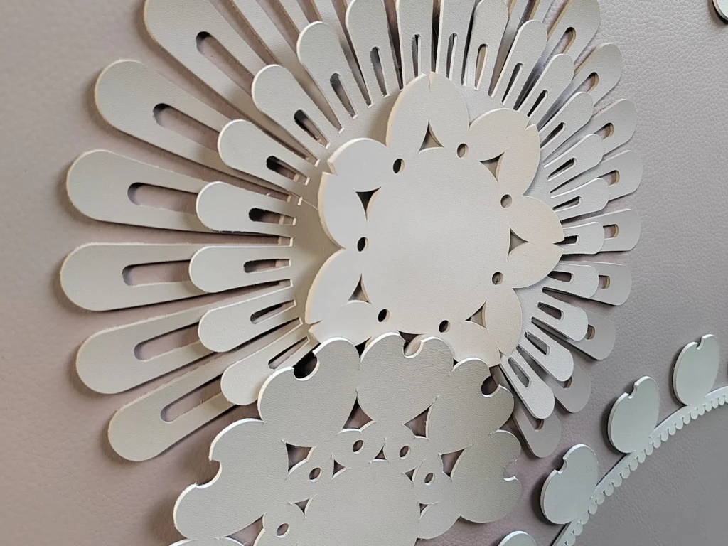 • Multi-Layered 3D Detailing: Each floral element was precision-cut and meticulously layered to create a rich, tactile surface.